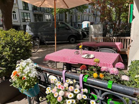 Im warmen Frühlingslicht, das durch die Fensterscheiben fiel, zeichnete sich ein schmaler Sonnenstreifen quer durch das kleine Lokal Pappenheimer Wirtschaft – genau auf die Dinge, die N. mit liebevoller Sorgfalt arrangiert hatte: das Blumengesteck vor der Tür, ein Teller mit filigranem Muster, farblich abgestimmt auf die schmale Vase daneben, in der zarte violette Chrysanthemen und weiße Schleierkrautblüten standen.